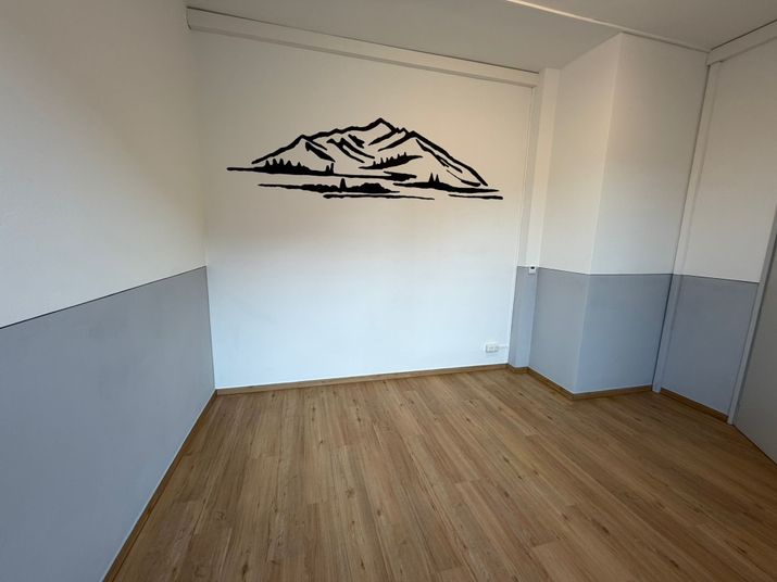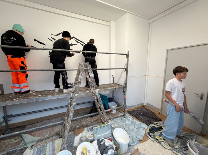 Die Schüler der 8. Klassen strichen den Raum neu und verliehen ihm mit einem aufwendigen Bergpanorama eine ganz besondere Atmosphäre. Unterstützt wurden sie von Malermeister Bernhard Poferl, der selbst einst Schüler der Staudacher Grundschule war. Für ihn war das Projekt daher nicht nur ein handwerklicher Auftrag, sondern auch eine Herzensangelegenheit.